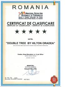 Under the management of Mr. Roman Kofler, who acts as opening General Manager, the property was awared officially 5 stars by the Ministry of Tourism of Romania. The Doubletree by Hilton Oradea, is the only 5 star managed hotel by an international operator outside of Bucharest!